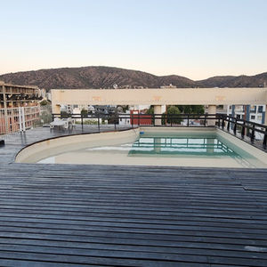 Piscina y solarium en espacio compartido